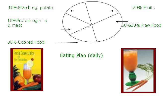 Each Day - 6 nos. Vegetables + 2 nos. Fruits +